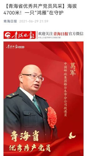 我在想,葛軍接受采訪,是沖著咱《人民日報》的面子?后來,一路同行聊得深了,我才知道葛軍早已是媒體的常客,也是見過大陣仗的:作為郵政系統的先進典型,他榮獲過“全國五一勞動獎章”“中國青年五四獎章”“青海省優秀共產黨員”,早在2017年就曾接受過一眾央媒的采訪,浩浩蕩蕩幾輛采訪車,跟著他的郵車從格爾木一路開到了唐古拉,好不風光。