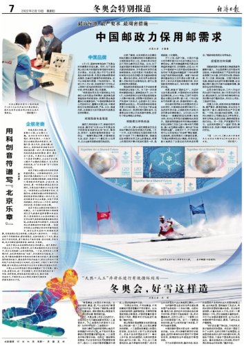 在弘揚(yáng)優(yōu)秀傳統(tǒng)文化和奧林匹克文化的同時,中國郵政在郵票印制中引入先進(jìn)的科技手段,以嶄新的形式呈現(xiàn)北京冬奧會的精彩魅力。以《北京2022年冬奧會——競賽場館》紀(jì)念郵票小型張為例,首次應(yīng)用菲涅爾透鏡微納光刻技術(shù)。國家速滑館建設(shè)所用的剩余玻璃材料經(jīng)過特殊工藝加工成50微米的可用顆粒,摻入紅色雕刻油墨中,制作成“冰絲帶特種油墨”。在紫光燈下,方寸間的場館可以立即呈現(xiàn)出“冰絲帶”霓虹璀璨、光影流轉(zhuǎn),場館周圍燈火輝煌的夜景。“冬奧會郵票郵品設(shè)計精美,很受歡迎,極大地滿足了各國運(yùn)動員和來賓的需求。”國家郵政局局長馬軍勝說。