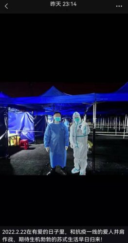 朋友圈里,他這樣記錄道:“2022.2.22在有愛的日子里,和抗疫一線的愛人并肩作戰,期待生機勃勃的蘇式生活早日歸來!”