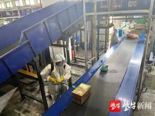 快遞來自全國各地,有的還來自疫情中高風險地區,中國郵政集團有限公司南京市寄遞事業部副總經理俞翔介紹,郵件抵達南京郵區中心后,郵區中心會對郵車和郵件進行全方位消殺;對于國際郵件和來自中高風險地區的郵件,在卸車后每一個郵件上快遞傳送帶,由專人對郵件進行逐件“六面”消殺。對于所有郵件,南京郵政都是包裝拆到哪一層,消毒就做到哪一層,力求防控細節到位。