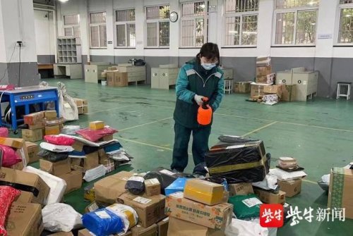 郵件到達營投部后,郵政人員對車輛和郵件還要進行全面消殺。“工作人員上崗前發送健康碼和行程碼,到崗后第一件事先測量體溫做好登記,佩戴手套、口罩等,然后對車輛全部消殺一遍,對郵件外包裝至少每2小時進行一次消殺……”中國郵政集團有限公司南京市鼓樓區寄遞事業部副總經理馬曉東說道,營投部每日進行多頻次消殺和通風,從操作間地面、快遞傳送帶到每一個快遞包裹,都會噴灑消毒,確保全覆蓋、無死角,保證生產生活環境清潔安全。