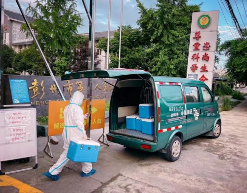 彭州郵政轉運核酸樣本。(成都郵政分公司供圖)