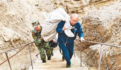 上橋,有兩條路線:一是開車走盤山“搓板路”,路遠(yuǎn)難行還危險(xiǎn);二是徒步爬一條直通橋上的水泥臺(tái)階,150級(jí),坡度近70度,被執(zhí)勤部隊(duì)官兵形容為“天梯”。高海拔下,二十來歲的年輕戰(zhàn)士,走“天梯”都會(huì)頭暈?zāi)垦#?976年生人的葛軍,為節(jié)省時(shí)間,每次都選擇扛著郵包往上爬。