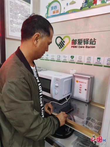 本著最大范圍服務戶外勞動者工作的原則,郵儲銀行南充市分行選擇網點面積較大,地處戶外勞動者密集區域、毗鄰居民居住區、臨街的網點優先建設郵愛驛站。網點設立服務專區,配備休息桌椅、飲水機、微波爐、充電器、雨傘、醫藥箱、輪椅等便民設施,為戶外工作者、特殊客戶群體及其它緊急訴求的社會公眾提供服務資源。網點在醒目位置張貼服務站點標識,讓戶外勞動者“知道來、經常來”。三年來,郵愛驛站已累計為戶外勞動者約5萬余人提供服務。