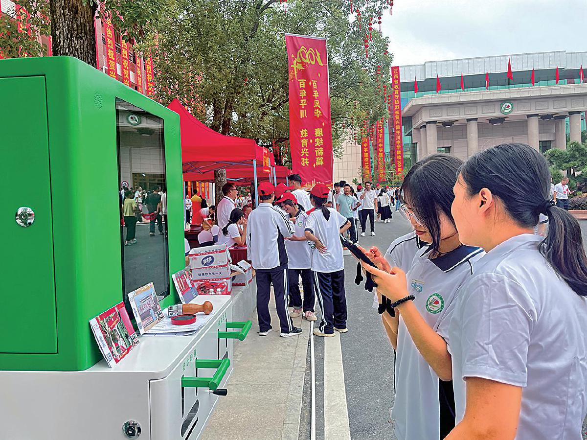 興國(guó)縣分公司在平川中學(xué)百年校慶活動(dòng)現(xiàn)場(chǎng)設(shè)置明信片打印機(jī),吸引同學(xué)們參與。 □李艷 攝