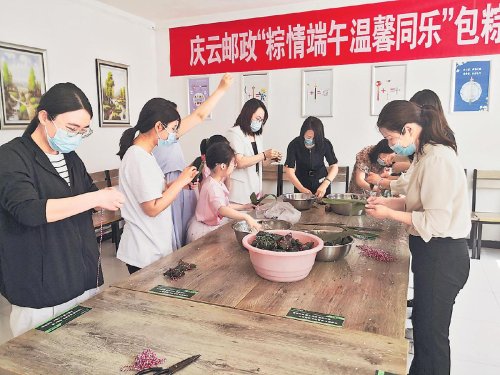 每年端午,德州市慶云縣郵政分公司都會邀請客戶到“職工小家”開展包粽子活動。 □李平 攝