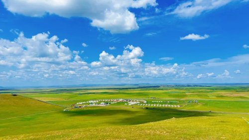 盛夏的呼倫貝爾大草原,清澈的藍天上懸掛著朵朵白云,目之所及是廣闊無垠的綠,牛羊成群,美得就像一幅畫。