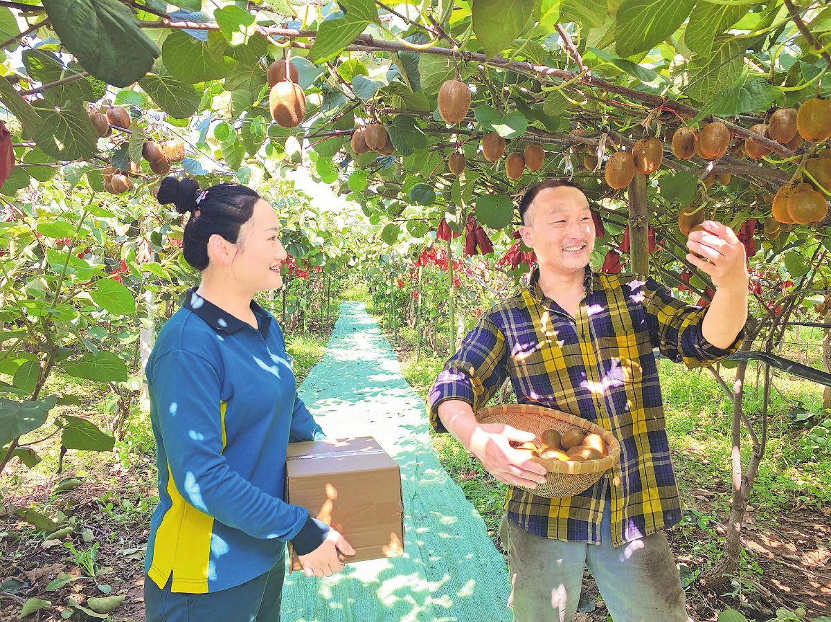 郵政上門收寄獼猴桃,農戶樂開懷。□劉力揚 攝