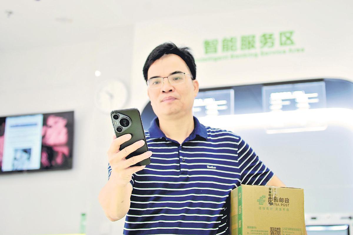 支局周圍的商戶常常會來自助寄件。在附近做了十多年電子產(chǎn)品生意的吳先禮是這個網(wǎng)點的常客。說起網(wǎng)點的變化,他很有感觸:“以前來這個營業(yè)點寄東西,人多的時候要等不少時間;現(xiàn)在我提前在手機上下單,來了直接寄,像是自己家里有郵局,非常方便!”
