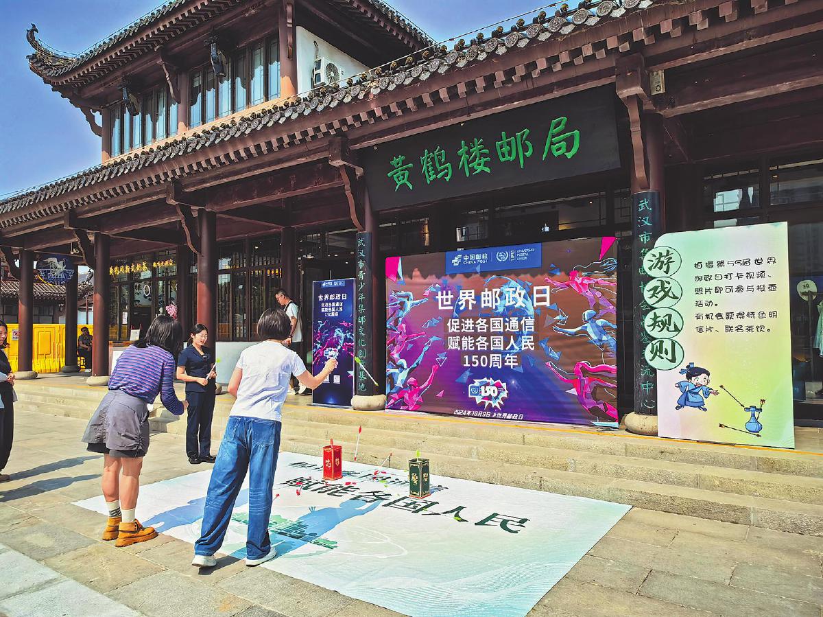 湖北省武漢市郵政分公司在黃鶴樓郵局、東湖高新政務(wù)中心以及全市各個郵政網(wǎng)點舉辦了形式多樣的世界郵政日主題宣傳活動。位于黃鶴樓景區(qū)東門的黃鶴樓郵局在世界郵政日當天開展了集戳打卡、趣味投壺、書畫展示等豐富多彩的活動,吸引了不少市民和游客參與。 □肖芳 陳娟 攝