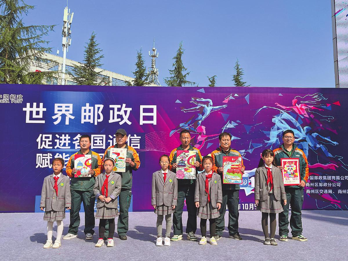 陜西省商洛市郵政分公司舉辦世界郵政日宣傳暨“童心同行 郵政相伴為美好生活加‘郵’”活動,來自商州區(qū)第六小學的5位小朋友現(xiàn)場為郵政快遞員送上了精美的手繪作品。 □張瀟 攝