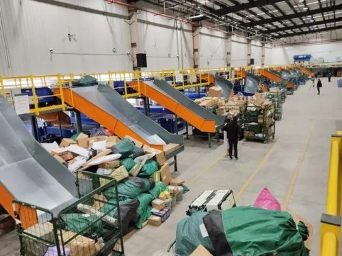 隨著一輛輛卡車到站停靠在垛口處,來自各地的郵件通過傳送帶進入省際進口郵件處理中心,粗分、拆包、小件掃描、裝籠,工人們圍繞著各個分揀線開始緊張有序的郵件分揀作業(yè)。