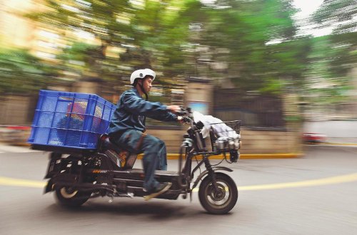 上午9點,一輛輛滿載郵件的電動車陸陸續續從攬投部駛出,每輛電動車的尾部都嵌有方形塑膠箱子。為了提高投遞效率,劉孜力和伙伴們放棄了裝載量更大的三輪車,利用“瘦身”的電動車多次快速穿梭在人流擁擠的大街小巷,盡管每次只能運載五六十件郵件。