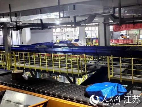 南京郵區中心包件進口處理車間。人民網 黃啟源攝