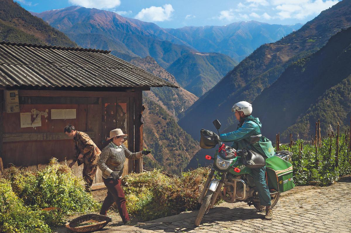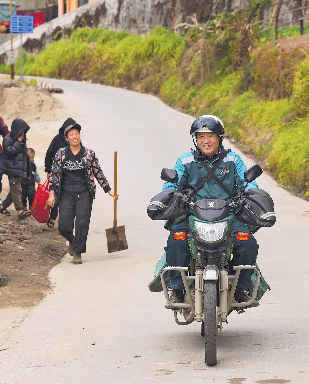每一次郵件妥投,鄉親們和桑南才的臉上都會洋溢著幸福的笑容。□新華社記者 李賀 攝