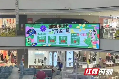 丁女士看到的宣傳是郵儲銀行湖南省分行近期在全省各大知名綜合體商圈,如萬達、步步高、天虹、友阿等,廣泛開展的“郵儲小綠卡,逛到就省到”的信用卡宣傳活動。此次活動是該分行積極響應國家促消費、擴內需號召,深度融合銀行文化特色,通過綜合體內外的LED電子屏、大型吊幔、側旗、水晶立牌等多種媒介,進行滿減活動宣傳,旨在為客戶帶來全新的生活消費體驗。