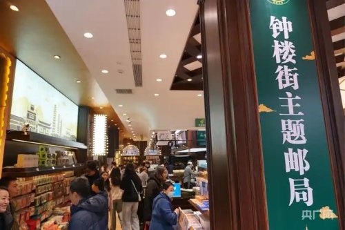 開業(yè)當(dāng)天,鐘樓街主題郵局內(nèi)人頭攢動(dòng)(央廣網(wǎng)記者 張潔 攝)