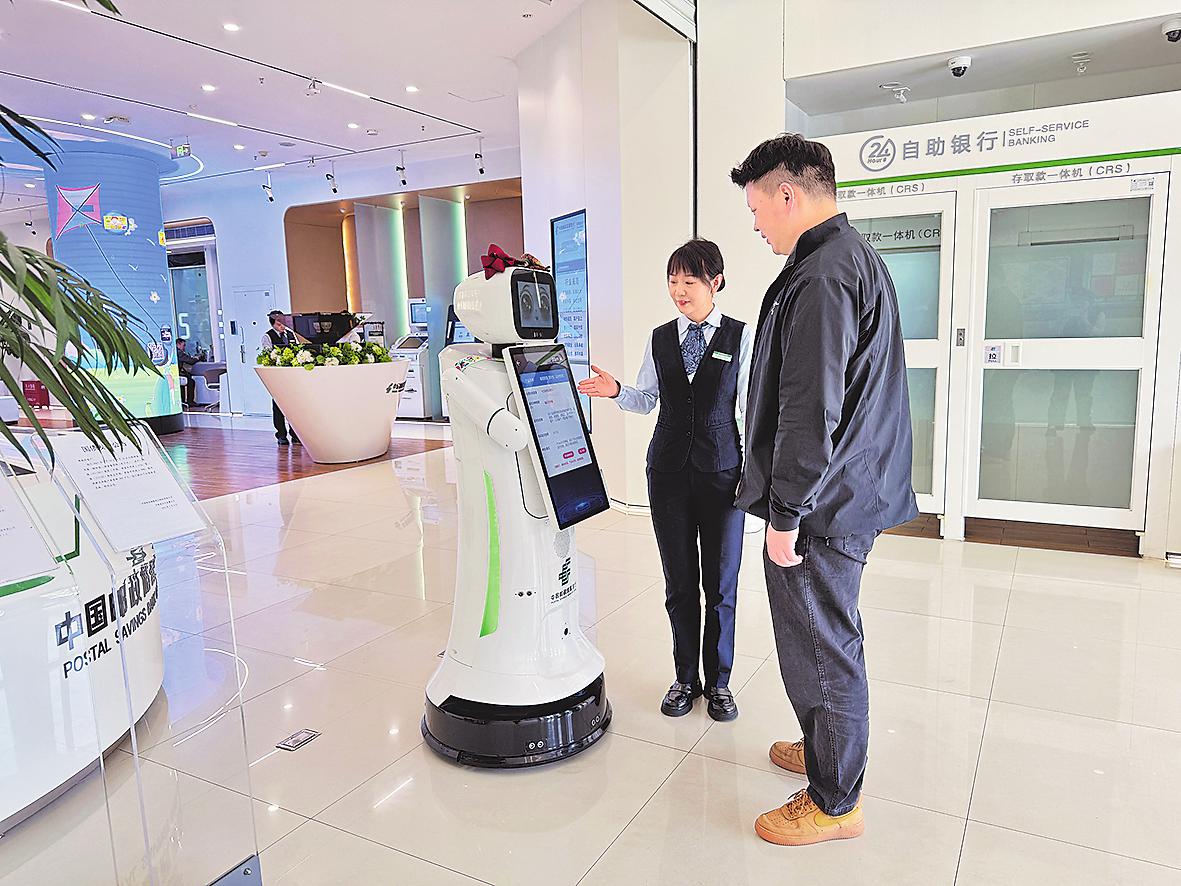 “尊敬的VIP客戶王先生,您預(yù)約的理財經(jīng)理已在3號窗口等候?!?月12日9點整,在郵儲銀行河南省分行直屬支行的營業(yè)大廳里,智能管家機器人“郵郵”已經(jīng)開始了一天的工作?!班]郵”能夠提供客戶引導(dǎo)、業(yè)務(wù)講解、產(chǎn)品營銷等服務(wù),可實現(xiàn)營銷觸客立體化、營銷結(jié)果可視化?!暗谝淮我姷綍鲃哟蛘泻舻你y行機器人,孩子特別喜歡,每次只要聽說我來郵儲銀行,她都要跟著?!编嵵菔忻駨埮空f話時,她的女兒小美正在一旁開心地和“郵郵”聊著天,機器人靈動的表情和幽默的應(yīng)答引得周圍客戶紛紛駐足。
