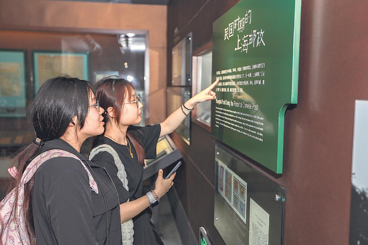 上海工商職業(yè)技術(shù)學(xué)院學(xué)生認(rèn)真參觀上海郵政博物館展覽。