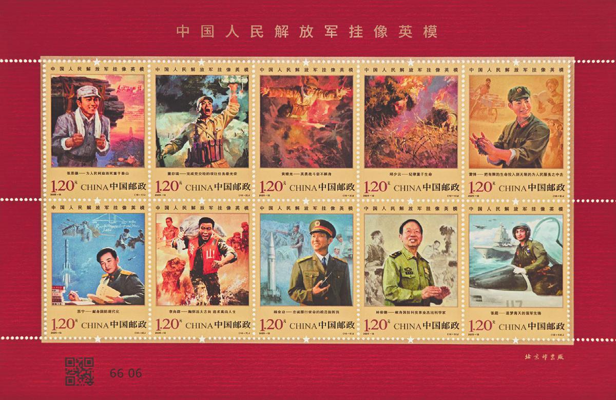 8月1日,《中國人民解放軍掛像英模》紀念郵票發行。該套郵票一套10枚,展現的英模人物分別是:張思德——為人民利益而死重于泰山,董存瑞——完成黨交給的艱巨任務最光榮,黃繼光——英勇戰斗奮不顧身,邱少云——紀律重于生命,雷鋒——把有限的生命投入到無限的為人民服務之中去,蘇寧——獻身國防現代化,李向群——胸懷遠大志向追求高尚人生,楊業功——忠誠履行使命的模范指揮員,林俊德——獻身國防科技事業杰出科學家,張超——逐夢海天的強軍先鋒。