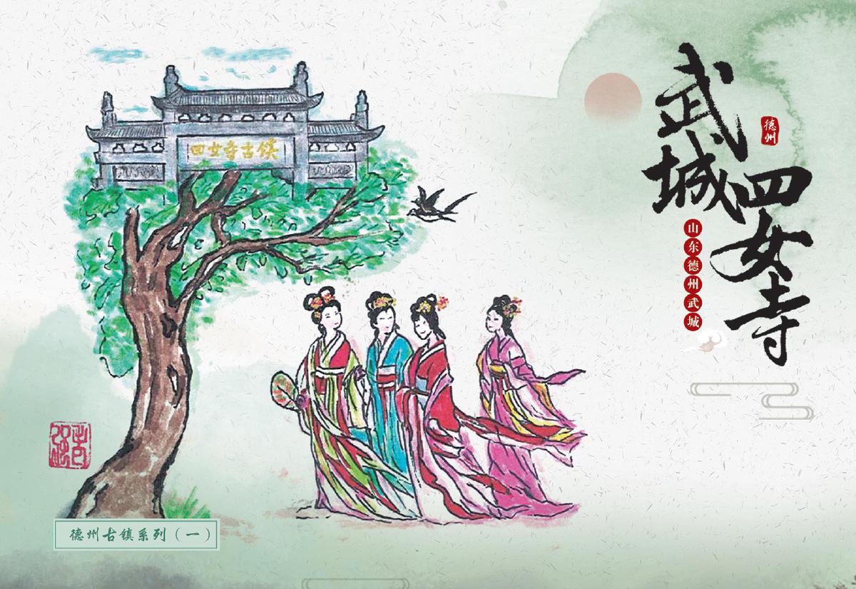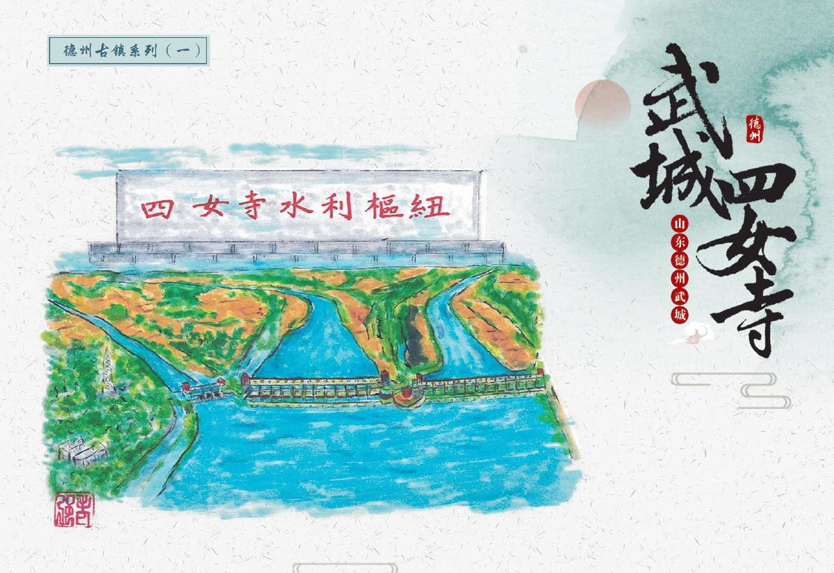 此次首發的文創產品涵蓋郵資封、明信片、郵資機宣傳戳及主題宣傳戳四大類,每一件都浸潤著四女寺的文化基因。其中,“四女”郵資封(右上圖)以工筆重彩呈現經典場景:畫面中四位女子于槐樹下漫步,旁側牌坊古樸,飛鳥點綴天際,還原“四女侍親,栽槐立誓”的民間傳說,四女常伴樹側,行孝事、話桑麻,樹與人相襯成景,演繹著傳統孝道的溫度,讓古老美德在時光里熠熠生輝,供后人感懷、傳揚;而“四女寺水利樞紐”明信片(右下圖)則通過航拍視角與細節特寫的結合,展現這座黃河下游重要水利工程的宏偉氣勢——堤壩蜿蜒如巨龍伏波,閘門啟閉間盡顯古人治水的智慧結晶,讓現代觀者得以觸摸歷史的溫度。