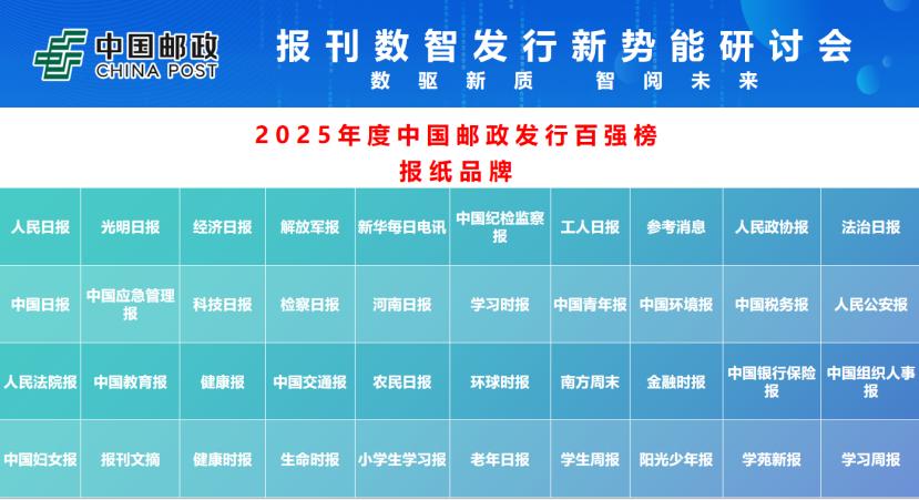 會上,集團公司報刊發(fā)行局發(fā)布了備受關(guān)注的“2025年度中國郵政發(fā)行百強榜”,包括《人民日報》、《光明日報》在內(nèi)的40家報紙品牌,《求是》、《中國紀檢監(jiān)察》等50家期刊品牌,以及參考消息數(shù)字報、人民日報健康客戶端等10家數(shù)媒品牌上榜。此次百強評定綜合考慮了郵發(fā)報刊的發(fā)行量、品牌影響力、媒體融合發(fā)展的貢獻度等多個指標。此外,報刊發(fā)行局在此次會上還與河南日報報業(yè)集團、《人民論壇》雜志社、中國交通報社、中國農(nóng)業(yè)出版社、中航出版?zhèn)髅接邢挢熑喂疽约啊敦斀?jīng)》雜志等多家單位簽訂戰(zhàn)略合作協(xié)議,標志著中國郵政在報刊數(shù)智發(fā)行領(lǐng)域合作網(wǎng)絡(luò)的進一步拓展。