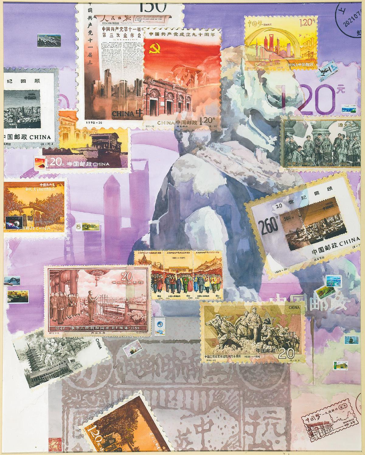 為了更好地完成畫作,田燕萍還請教了她的繪畫老師——浙江省美術(shù)家協(xié)會會員、水彩畫界策展人馬百齊?!胺酱鐚Ξ嬀恚H有歷史和藝術(shù)的價值。”馬百齊肯定了田燕萍的創(chuàng)作思路,并在郵票選取、表現(xiàn)手法、繪畫技巧上對其進(jìn)行了專業(yè)的指導(dǎo)。