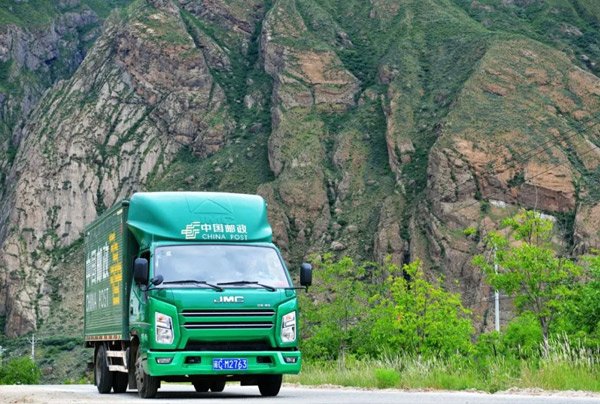 采訪組跟隨滿載包裹的郵車