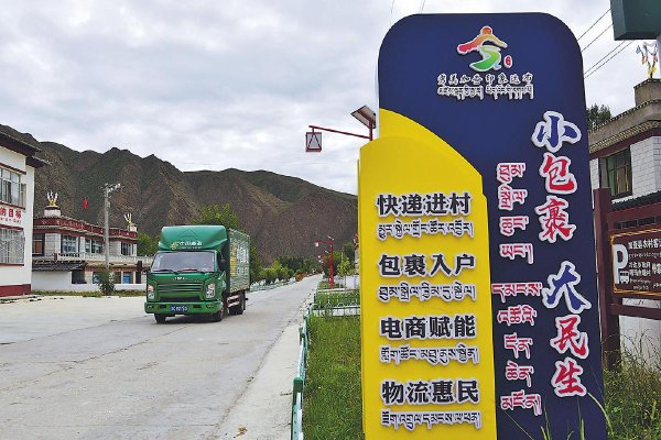 郵車駛進普瑪江塘鄉,送來了村民們網購的生活日用品。