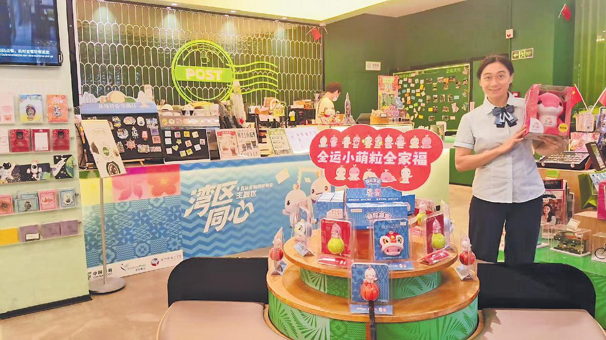 廣東省珠海市浪漫風(fēng)情海岸主題郵局里的十五運(yùn)會主題區(qū)推出特許商品。 □袁蕊 攝