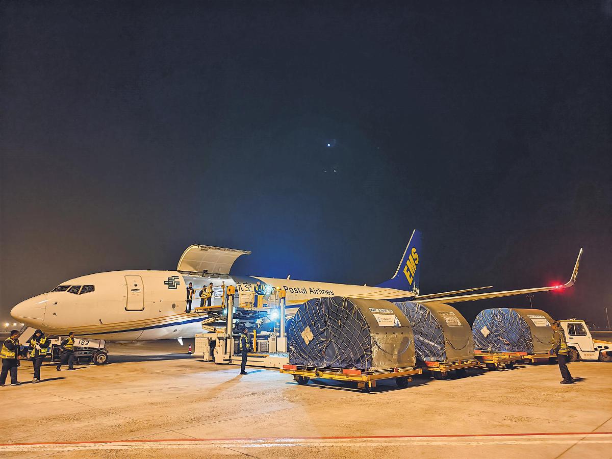 包裹從內蒙古搭乘郵政航空貨運專機經轉南京集散中心奔赴上海。
