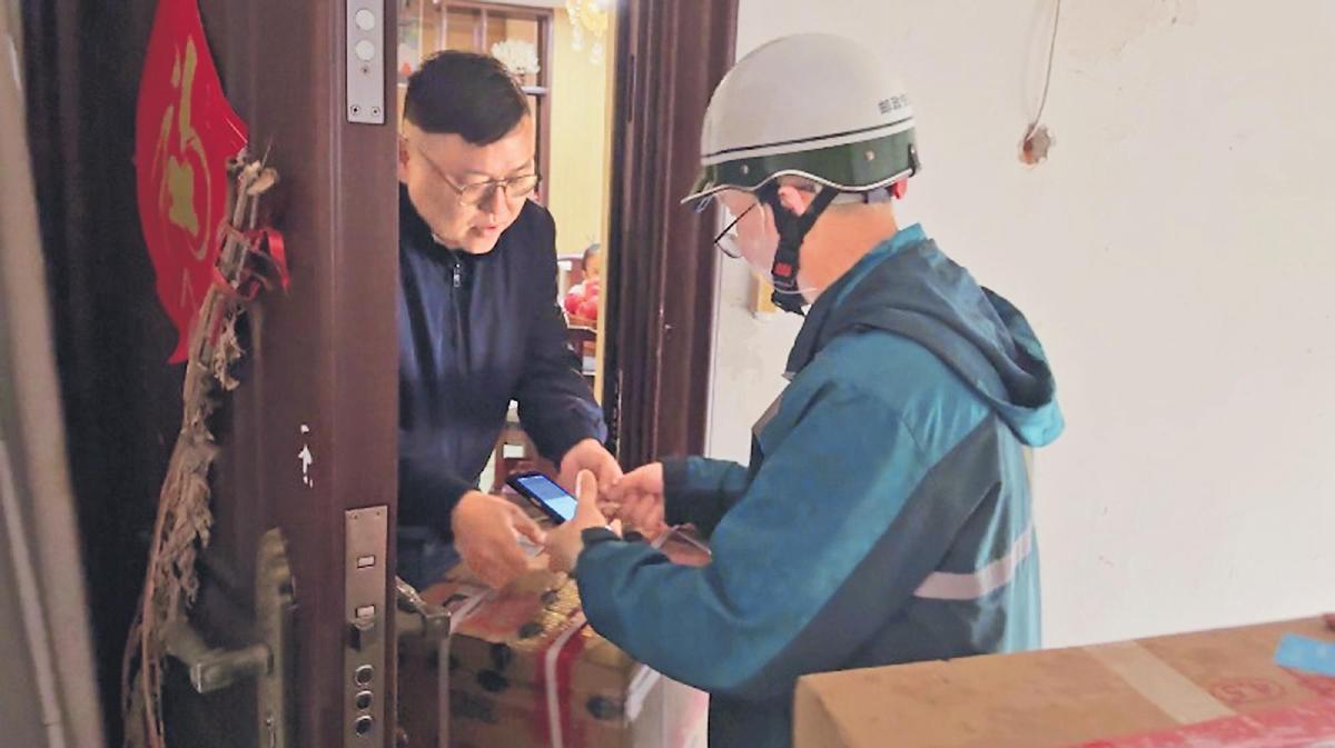 世博攬投部攬投員取件后,開始上門投送包裹。