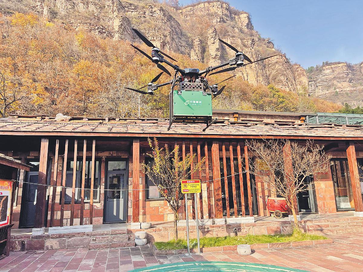 石板巖鎮地處太行山深處,17個行政村散落于群山之中。今年6月以來,安陽市郵政分公司在石板巖鎮開通12條低空郵路,讓村民在村頭就能完成“從田間到云端”的寄遞,農產品出山時間壓縮至20分鐘內。