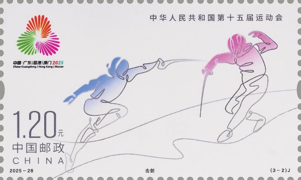 中國(guó)郵政定于11月9日發(fā)行《中華人民共和國(guó)第十五屆運(yùn)動(dòng)會(huì)》紀(jì)念郵票1套3枚,郵票圖案名稱分別為花樣游泳、擊劍、乒乓球。全套郵票面值3.60元,計(jì)劃發(fā)行數(shù)量為套票500萬(wàn)套、版式二69.3萬(wàn)版。