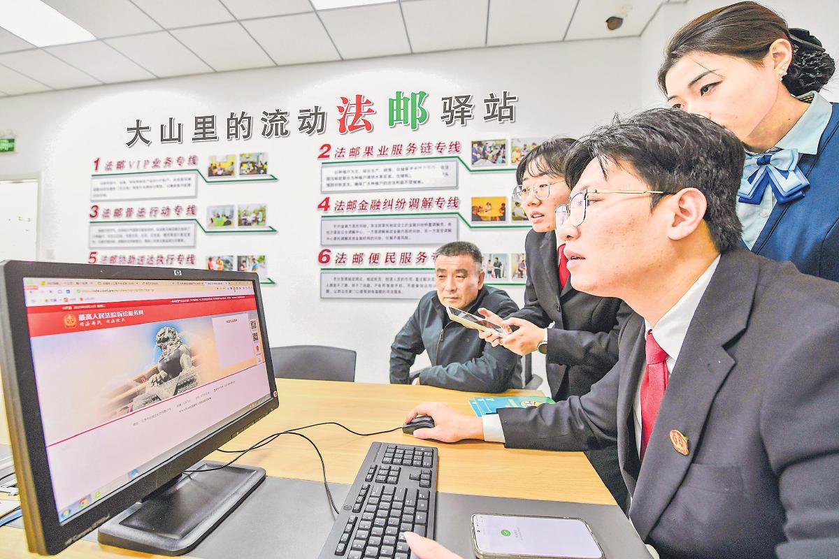 10月20日,沂源縣人民法院東里法庭法官到法郵服務站指導郵政工作人員利用網(wǎng)絡上傳訴訟材料。