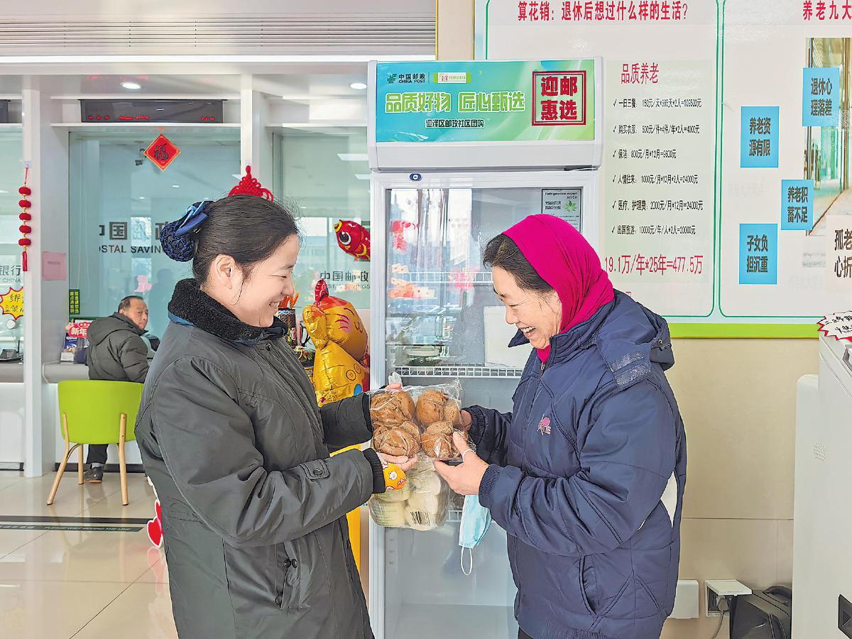 在選品環節,太原郵政堅持“品質為先”,對合作廠家開展全面考察,從原料溯源、生產工藝到成品口感均設定明確標準,以“郵政嚴選”建立消費信任。在營銷推廣上,太原郵政依托微信生態搭建線上陣地,由網點員工作為“團長”運營社區群,通過圖文、視頻等生動展示面食產品。除了常規的普通饅頭,廠家還推出紫薯味饅頭、南瓜味饅頭、全麥饅頭、雜糧饅頭、老面饅頭等不同口味、不同原料、不同工藝的多個特色品種,滿足消費者的多元需求。各網點同步引導客戶預約購買,以銷定產的模式降低了廠家的庫存壓力與資金占用。在消費體驗上,各網點設立專門自提點并配備保鮮設備,通過集采集配減少中間環節,確保產品新鮮直達。在自提過程中,郵政工作人員主動提供售后與咨詢服務,并巧妙融入郵政相關業務推廣,實現“一次接觸、聯動營銷”。