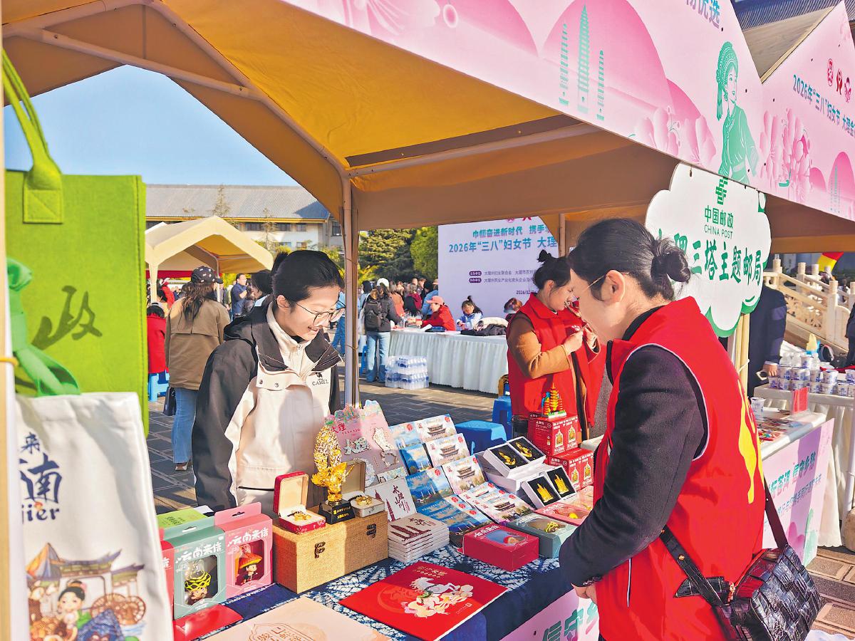 活動現場,主題郵局展臺前人氣滿滿,獨具特色的三塔系列特色明信片、大鵬金翅鳥非遺文創等郵品吸引了眾多客戶駐足觀賞、挑選購買;同時,現場還提供紀念戳加蓋、明信片手寫寄遞等“一站式”服務,讓大家既能挑選心儀郵品,又能沉浸式體驗郵政文化,成為集市中一道溫馨而獨特的風景。