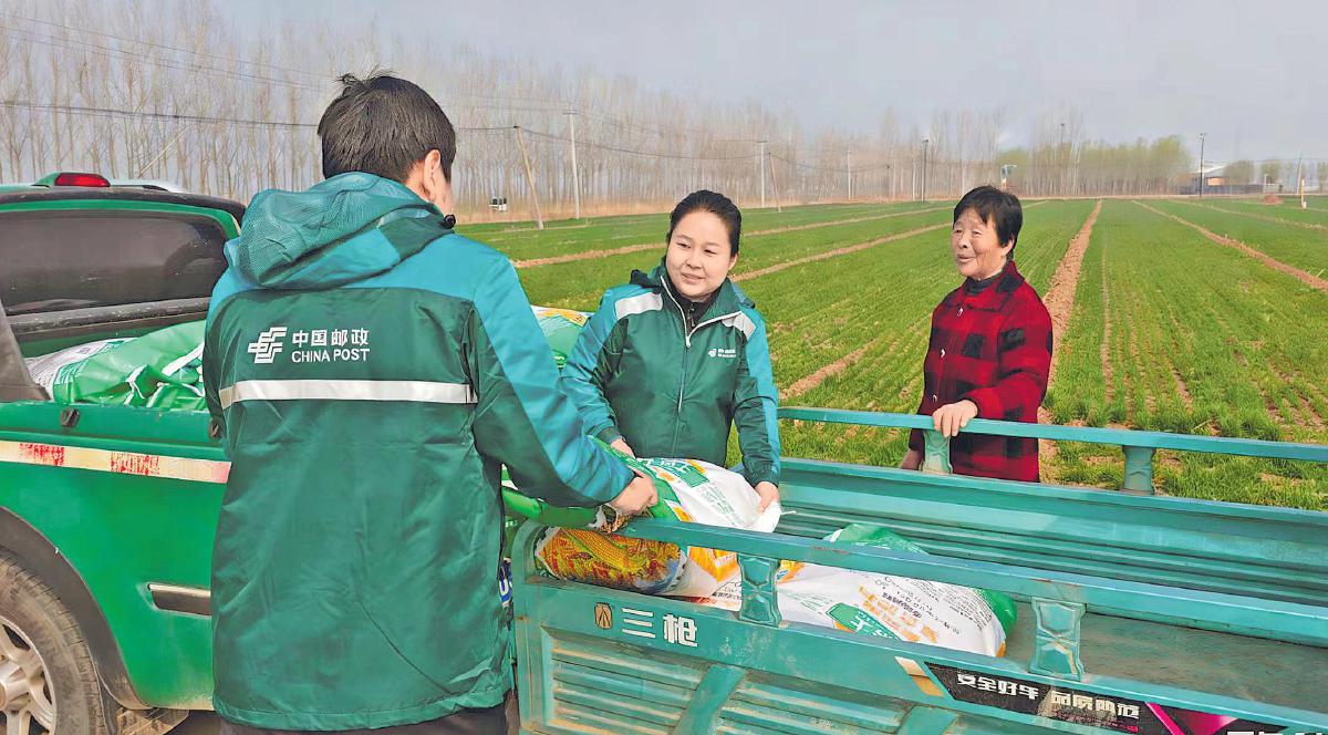 3月17日,在山東省德州市齊河縣大黃鄉彭太村的田間小路上,郵政員工開著小貨車早早地來到田間地頭,將化肥擺放到村民指定的位置。在魯西北,驚蟄一過,農戶便開始陸續下地春耕。齊河郵政不僅及時將農資配送到“最后一公里”,還幫農戶邀請專業人員講解春天病蟲害防治等農技知識,為農戶春耕生產提供既省心又暖心的服務。