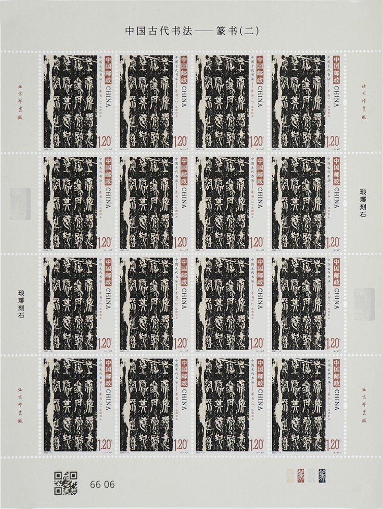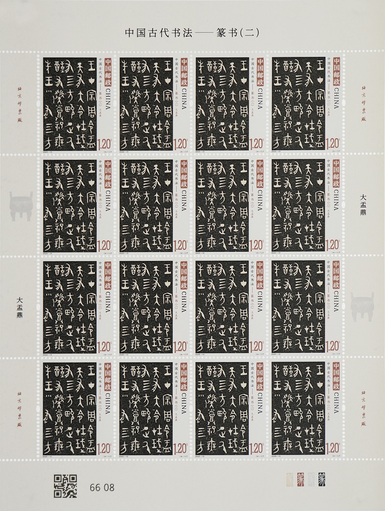 中國郵政定于2025年6月21日發行《中國古代書法——篆書(二)》特種郵票1套4枚,小型張1枚。詳情如下: