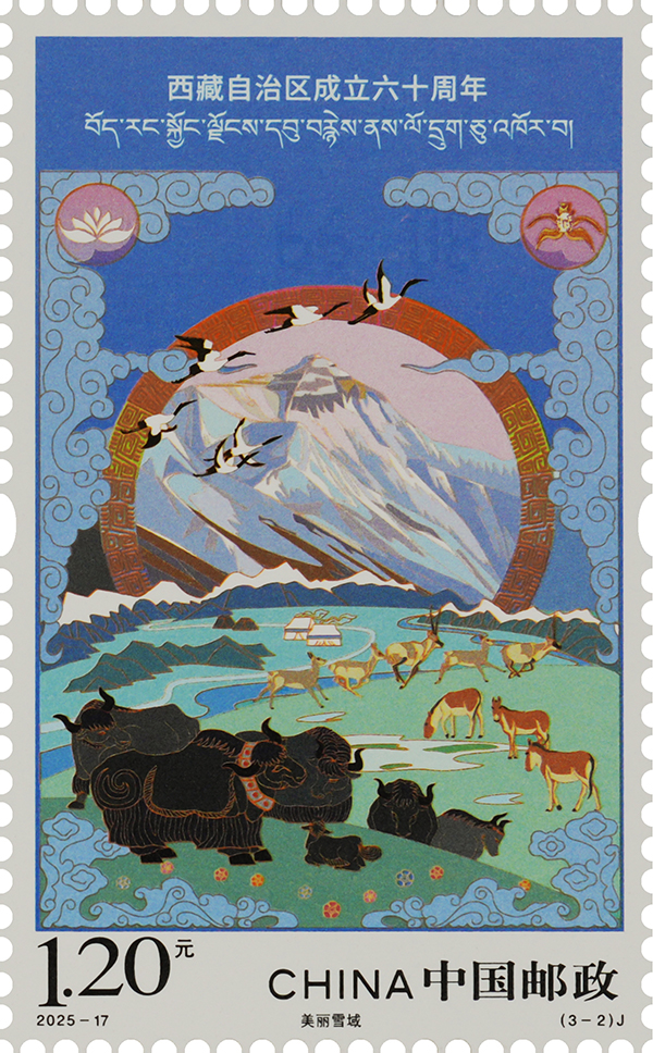 中國郵政定于2025年8月15日發行《西藏自治區成立六十周年》紀念郵票1套3枚。詳情如下: